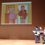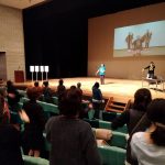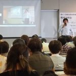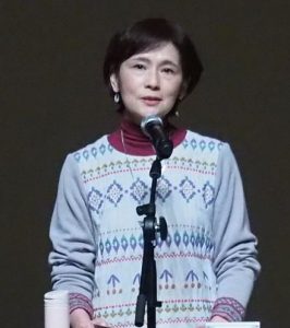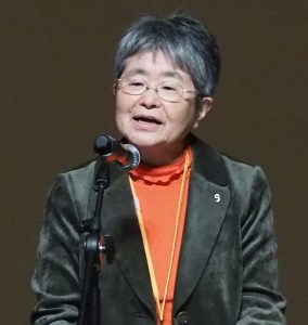 記念講演では、俳優の斉藤とも子さんに、「今 わたしが伝えたいこと」と題して講演いただきました。38歳の時に出演された舞台をきっかけに出会った被爆者との交流の中で、世界がどんどん広がり、今までずっと支えられてきたと話されました。昭和22年に文部省が中学一年生の教科書として発行した「あたらしい憲法のはなし」を引用し、前文に書かれている「民主主義」「国際平和主義」「主権在民主義」が大切な国の考え方であるとされていること、「戦争の放棄」について書かれていることを引用されました。「福島原発ひろしま訴訟」やこども甲状腺がんになった方の意見陳述書などを朗読されながら、被災者の思いを語られました。実際に足を運んで、声を聞いて本当の事実を知り、反対の意見も聞き、そして自分で判断している、足元から事実を見つめ、行動する斉藤さんの姿勢に、共感の声が多く寄せられました。