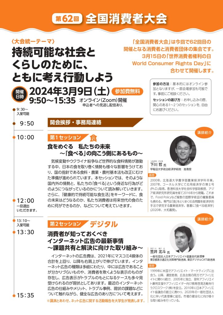 「全国消費者大会」は今回で62回目の開催となる消費者と消費者団体の集会です。