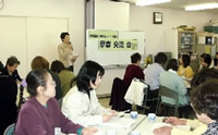 - 午後は実際に直売コーナーに野菜を出荷しているJA鴻巣市の小林町子さん(フレッシュミズ)から生産者としての意気込みや苦労話をしていただき、交流に入りました。