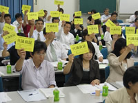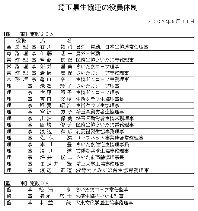 その後、発言申し込みにもとづき、山﨑代議員(労済生協)から「創立40周年記念事業と対面型の店舗ぐりんぼうの開設」、松井代議員(大東文化学園生協)から「学生委員会の活動」、松澤代議員(医療生協さいたま)から「健康作りを中心にした組合員活動の1年の振り返り」、坂本代議員(ドゥコープ)から「2006年度活動のまとめの補足」について発言がありました。 |