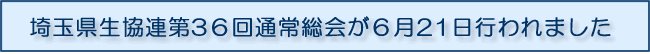 石川会長理事が埼玉県生協連を代表し「厳しい経営環境の中でも、組合員が192万人(7万人増加)になりました。組合員のくらしは、格差の拡大や社会保障の後退など大変厳しく、くらしに貢献できる生協となるよう発展させなければと思っています。生協法が約60年ぶりに改正されました。国会討論の中で生協の社会的役割とそれに伴う責任も一層大きくなっており、発展の基盤を法律的にも作っていくという事が必要とのことで改正につながりました。憲法改正の動きが活発になっています。憲法は国家の有り様を決める大きな性格をもっており、組合員が自主的に判断できるようなさまざまな学習の場を持っていきます」とあいさつしました。 |