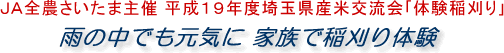 | 9月29日、JA全農さいたま「彩の米センター」(久喜市)にて、あいにくの雨にもかかわらずこの日を楽しみにしていた生協組合員「26家族104人」の参加で開催されました。