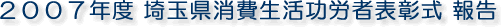 荒岡一成県民・消費生活課課長の司会で開会し、はじめに上田埼玉県知事の代理で出席された岡島敦子副知事が、「本日表彰を受けられる皆さん方は、消費者のくらしや健康を守るために多大な貢献をされてきた方であり、これまでのご努力に対し深く敬意と感謝を申し上げます。皆様方には今回の受賞を契機に、消費者の為、県民の為に更なるご活躍を頂くようお願い申し上げます。今後も県民が安心してくらせる社会の実現に向けて全力で取り組んでいきますので、皆様方には特別のお力添えをいただきますようお願いします」とあいさつされました。 |