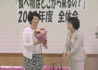 前島会長の退任と新会長に県生協連常務理事の新井里美さんが理事会で推薦されたことが報告され、前島さんのこれまでの活躍に感謝を述べました。 |