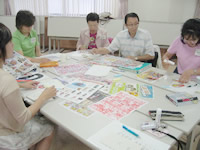 広告チラシや生協カタログから自分が食べたい食品を2点ずつ切り抜き、日本地図、世界地図上の産地に貼り、そこから見えてくるものを話し合いました。 |