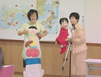 (3)笛木さんが腹話術人形ちーちゃんの楽しい食生活の実演を行いました。 |