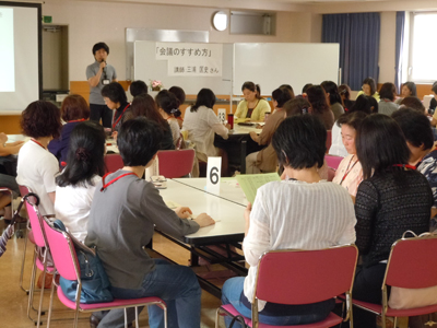 <概要> まず、有意義な会議の在り方を考えて行きます。会議とは、グループで行うもので、目指す意思決定の形は、コンセンサスによる決定です。私たちが行う市民活動・地域活動は、それぞれ自由意思を持った者たちが自己実現を求めて集います。よって「合意形成」による決定は、自分が存在した価値のあるものだと言えます。「合意形成」は、自然に生まれるものではなく、誰にとっても新しい考えです。ここで、「ジョハリの窓」という対人関係における気づきの図を見ていきます。グループで会議を行うことで、お互いに見えていなかったことも見えてきて、新たな発見へとつながって行きます。 次に、集まって話し合うことの意味や役割について考えて行きます。リーダーシップとは、集団の中で主として対人関係に現れる影響関係を言い、決断する人の事ではありません。また、話から脱線したり、マイナスなことを言ったりとマイナスのリーダーシップは、リスクマネージメントのサインを出しているととらえるこができます。市民活動ではいろいろなパーソナリティを生かしあうことが大切で、それは役割分担という形になります。 最後に、会議は、P(PLAN検討・計画)、D(DO実施・行動)、C(CHECK評価・反省)、A(ACTION見直し・次のPへつなぐ)を繋げて作っていきます。ワークとしてグループごとに自己紹介と聞きたいことを出し合いました。重要なこととして、会議に入る前の事前準備、目的や目標を確認する(事前に資料を配布等)。会場のレイアウトで言語外コミュニケーションを測る、その場で意見の確認や共有ができるよう記録(書記)はその場で行う、時間の管理を皆で行う、等が心得としてあげられました。 ≪感想≫
