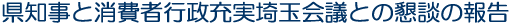 池本代表幹事から、消費者行政充実で大事な点は地方の強化ですが、全国の消費者行政予算が半減している中でも埼玉県は非常に努力していることに謝意を述べるとともに、5つの要望項目(県としての消費者行政充実強化の意思表明、知事の諮問機関としての検討会議の設置、市町村の消費者相談窓口の拡充、消費者行政専任職員体制強化と予算の大幅な増額、国に対する法整備や財政措置についての要請など)の説明を行いました。