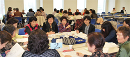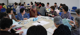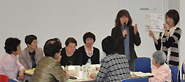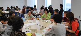 女性の視点でエコな活動に取り組み、リサイクルで収益金を得ている事例もありました。目標があるから元気でいられる。編み物やボール体操など楽しい話題も豊富。ここでつながりの実感が持てて良かった。会が終わっても、教え合いなどできそう。もっと時間が欲しかったです。