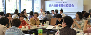 最初に「全国消団連」の役割、活動について紹介がありました。昨年度の主な取り組みとして、「消費者政策検討会」開催、地方消費者行政充実強化、集団的消費者被害回復に係る訴訟制度実現、東日本大震災と原発事故等の経過について話されました。この交流会のねらいとなる、消費者が主体的に行動するためには必要なことは主には二つあり、一つは“情報共有”と“消費者力アップ”、もうひとつは“連帯”と“協働”です。消費者団体には、消費生活に関する情報の収集や提供、意見の表明、消費者の被害防止と救済のための活動、消費生活の安定と向上を図るという役割があります。次に、PIO-NETや国民生活センターのデータから、消費者被害の現状に触れ、積極的に安全な情報の確保に努めることの具体的な方法や重要性について説明。消費者主役の社会づくりを目指し、2009年消費者庁・消費者委員会が創設されましたが、消費者の権利擁護や自立支援に関しての認知度や信頼度はまだ高くありません。安心してくらせる埼玉をつくるために、連帯と協働の推進役として具体的になすべき事の提案と、消費者関連法案の成立と地方消費者行政の財政基盤の確保のために世論形成や働きかけのお願いします。 ※東京電力との懇談や交渉についての質問がありました。 ◆報 告(埼玉消団連 岩岡事務長) 「公共料金に関する研究会」からの情報提供として、公共料金の決まり方と、東京電力料金値上げに関わる主要なチェックポイントについてお話ししました。 ◆まとめ・閉会挨拶(宮前幹事) くらしの全てが消費者課題です。消費者庁が出来て3年ですが、これからまだ行政に働きかけ、力を合わせて解決していきましょう。世代交代しても、引き続きこのまま頑張りましょう。 ◆交流 グループに分かれて活動交流・情報交換 <第1グループ>(9名)
