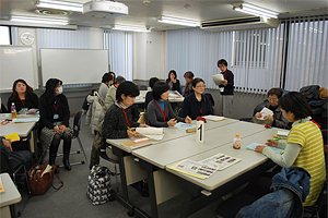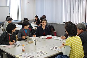 後段は、交流会として、講演と活動の報告・紹介を受けて、私たちでできる見守りをテーマに、3つのグループで話し合い、交流しました。 <グループ交流の模様>