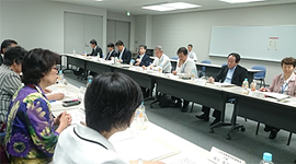 「食」の安全と安心の確保に向けた改革の取り組みの中で取入れられた「食育」の促進から「食育推進基本計画」決定に至るまでの経緯、背景及び栄養バランスに優れた「日本型食生活」の実践・推進等、最近の食育に関する位置づけ等について、関東農政局の具体的な取り組みとして、食育推進ネットワークの構築及び食育月間の取り組み、食育活動を行う企業との交流会、各種イベントの開催、管内における食育活動の事例、また大学生等を対象に実施したアンケート調査の報告がありました。 ◇消費者団体の食育の取り組み 県内消費者団体が行っている食育の取り組みの概要、カードゲームを交えながらコープみらいの食育の取り組みについて、パルシステム埼玉が行っている食育サポーターの取り組み、さいたま市消団連の若い世代を対象にした食に関する学習会の取り組みについて報告を行いました。 2.食の安全と異物混入問題 (公財)食の安全・安心財団 中村啓一事務局長 異物混入の現状、原因、異物混入が発覚した場合の対応、消費者に求めることなどについてお話をいただきました。消費者に求めることとしては「食品安全のゼロリスクは無いこと」を勉強して欲しいとお話され、異物混入問題は「事業者の努力」「消費者の理解」「メディアの冷静な報道」が重要であるとしめくくりました。 3.次年度からの農林水産省における組織再編について(2015年10月より実施) |