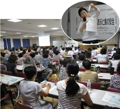 7月13日(月)10時30分より、コープみらいコーププラザ浦和にて、講師にFOOCOM事務局長の森田満樹さんを迎え「知っておきたい 新たな食品表示と食の安全」をテーマに第2回プレ学習会が開催され、110人が参加しました。