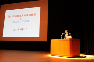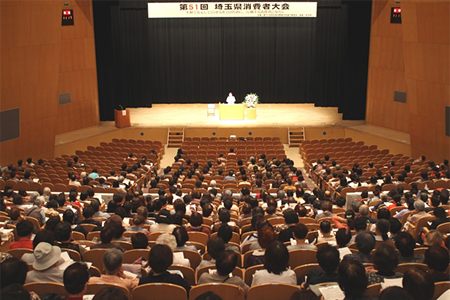 第51回埼玉県消費者大会実行委員会 9月25日(金)、埼玉会館にて、「平和で安心してくらせる社会のために、行動する消費者になろう」をスローガンに、第51回埼玉県消費者大会が開催され、全体会に800人が参加しました。