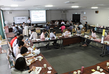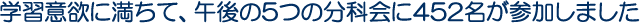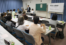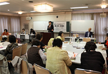 埼玉会館小ホールと4つの会議室で開かれ、452人が参加しました。助言者の報告、各団体の取り組みや事例報告、参加者の意見交流、質疑が行われ、それぞれ課題を深めました。 <第1分科会:食> 160人参加
