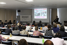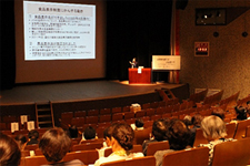 大ホール・小ホールと2つの会議室で開かれ、393人が参加しました。「飯館村のお母ちゃんたち 土とともに」の上映、助言者の報告、各団体の取り組みや事例報告、参加者の意見交流、質疑がおこなわれ、それぞれ課題を深めました。 <第1分科会:食> 90人参加