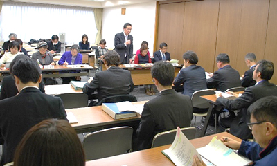 3.埼玉県の回答 岩岡事務局長の概要説明の後、要請事項の抜粋した16項目について、担当課からの口頭回答がありました。なお、すべての要請書項目に関する回答は、のちほど文章で回答が送られてくる予定です。 4.質疑応答 埼玉県からの回答を受けて、要請項目についての理解を更に深めるために、消費者大会実行委員会の参加者から発言をおこないました。発言した項目と内容の抜粋は次のとおりです。 「平和→戦争体験・被爆体験の継承、埼玉県平和資料館の資料の活用などについて」「消費→消費者被害防止サポーターの活用方法について」「食→食の安全に関するHACCP導入の課題について、ジビエの拡大、狩猟時の鉛排除の動向について」「福祉→介護保険の運用に関する市町村職員への教育などについて、新しい総合事業の移行進捗、市町村へのサポートなどについて」「医療→医師不足に関する埼玉県の取り組み、調査の内容などについて」 |