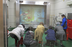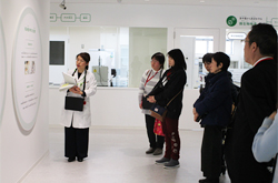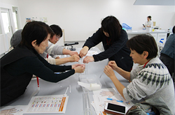 初めに、商品検査センターの役割について説明いただき、1階の各検査室の様子を見学、2階では食の安全に関する様々な情報を入手しました。最後に、実験室で手洗い実験などを行い、団体の商品検査センターの活用について案内いただきました。