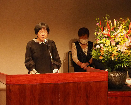 開会にあたり、実行委員会を代表して廣田美子実行委員長のあいさつがあり、3月から実行委員会で話し合いを積み重ね、実行委員会団体だけでなく一般の方にも実参加とオンライン参加を選んでいただけるよう準備したこと、午後は食と消費者課題、映画の3つの分科会を開催することにしたことなど報告しました。