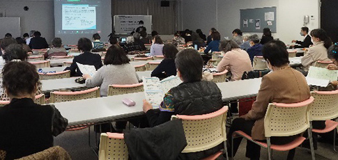 午後は3つの分科会が開催されました。食分科会は「健康食品で健康になれますか」をテーマに国立医薬品食品衛生研究所安全情報部部長の畝山智香子さんからお話しいただきました。消費者課題分科会は「知らないと損よ!消費者に身近な法律」と題して、弁護士の宮西陽子さんからお話しいただきました。小ホールでは、「ケアニン ~あなたでよかった~」を上映しました。食と消費者課題分科会は、会場とZoomのハイブリッドで行いました。